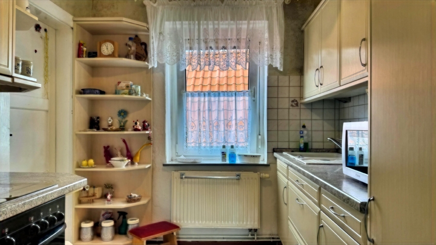 An das Wohnhaus angebaut ist das Nebengelass, in dem sich die Öl-Heizung inklusive der Tanks befinden, eine Pkw-Garage integriert ist und es Wirtschaftsräume gibt. Der Dachboden des Nebengelasses lässt sich zu Lagerzwecken nutzen. Hinter dem Haus ist ein größerer Garten, der sich für gärtnerische Aktivitäten eignet und auch Platz für Kinder zum Spielen bietet.
